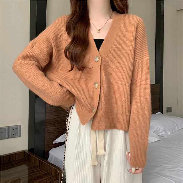 ニット カーディガン 長袖 Vネック ドロップショルダー 羽織 レディース トップス アウター 黒 青 緑 B-0089【お取寄せ】