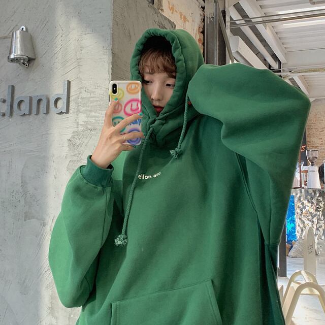 パーカー フーディー プルオーバー 長袖 ロゴ シンプル 裏起毛 フード付き スウェット レディース トップス 白 緑 B-0107【お取寄せ】