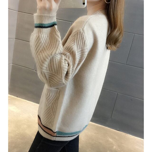 ニット カーディガン 長袖 Vネック カラフルボタン ライン カレッジカーデ 羽織 大きいサイズ レディース アウター 黒 白 赤 黄 青 B-0120【お取寄せ】