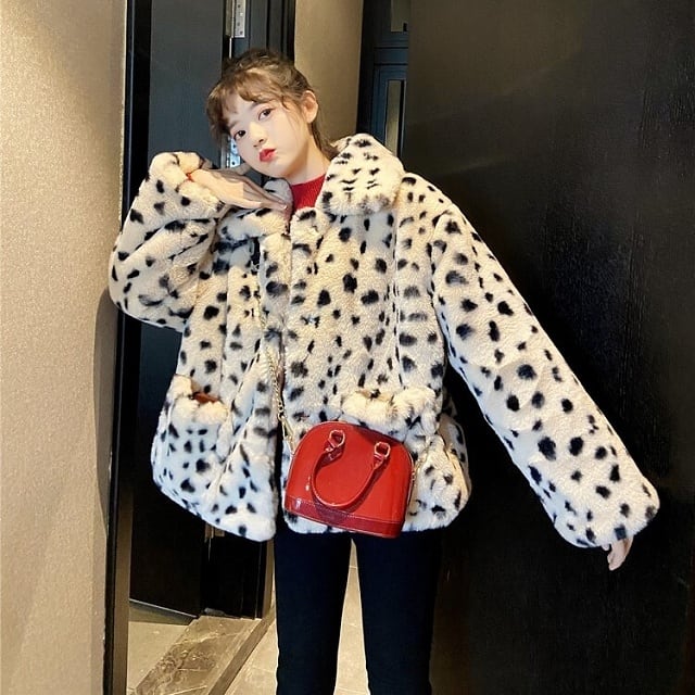 フェイクファー コート ジャケット ヒョウ柄 アニマル柄 レオパード エコファー 長袖 ポケット レディース アウター B-0132【お取寄せ】