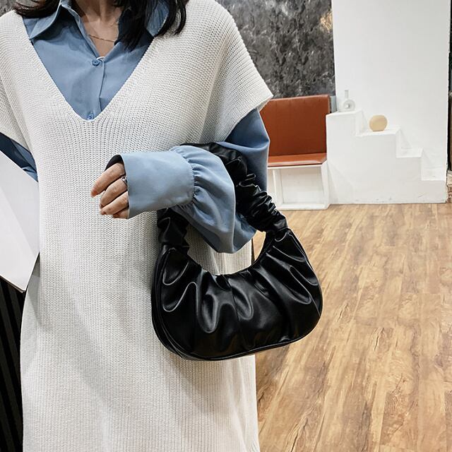 ハンドバッグ 手提げバッグ ミニバッグ ギャザー マグネットボタン 小さめ フェイクレザー 肩掛け かばん 鞄 レディース バッグ 白 黒 茶 青 紫 B-0139【お取寄せ】