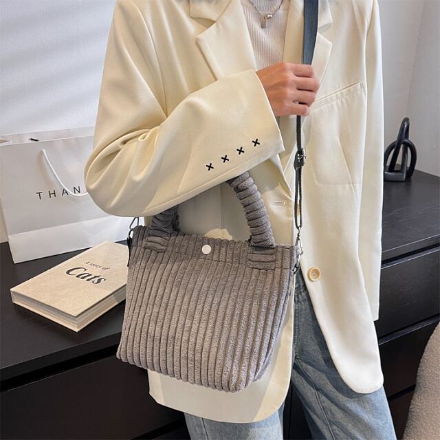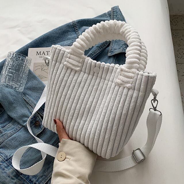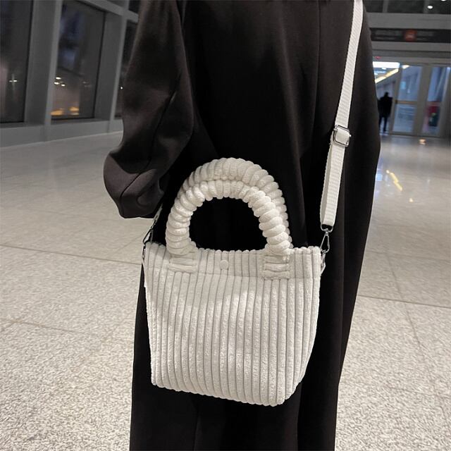 2way コーデュロイ ショルダーバッグ トートバッグ ハンドバッグ バケツバッグ ミニバッグ 小さめ 肩掛け 斜め掛け かばん 鞄 レディース 白 黒 茶 B-0144【お取寄せ】