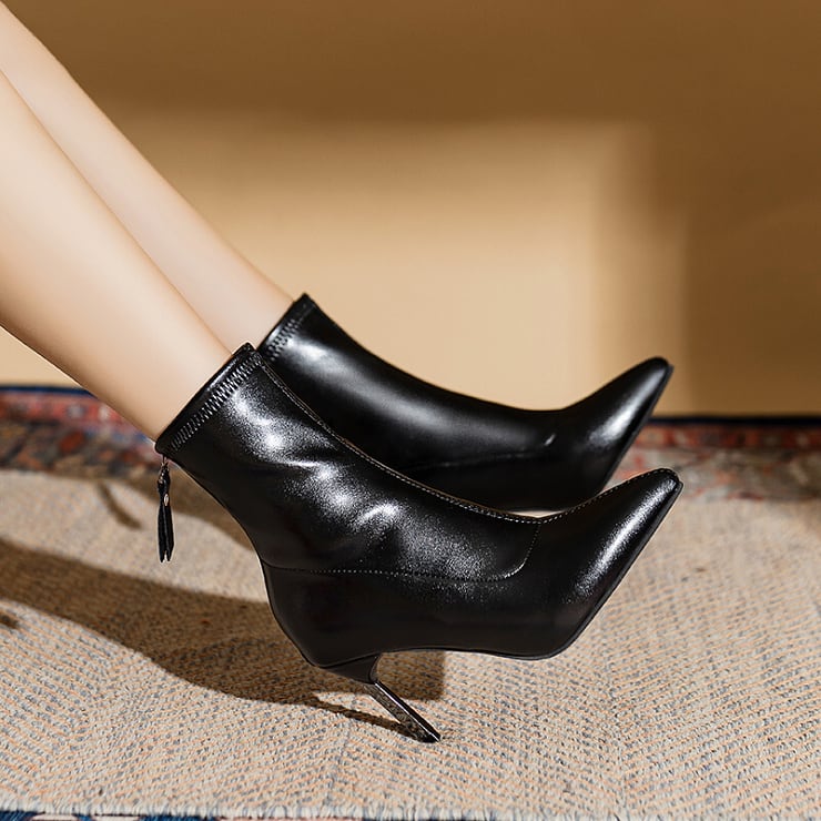 ミドルブーツ ショートブーツ ハイヒール ピンヒール ポインテッドトゥ バックファスナー レザー調 レディース 靴 シューズ 22-24.5cm 黒 白 B-0153【お取寄せ】