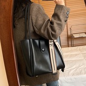 トートバッグ ポーチ付き 飾りベルト リボン 底鋲 インナーバッグ フェイクレザー 合皮 肩掛け ビジネス 通勤 通学 かばん 鞄 レディース 黒 茶 白 オフホワイト B-0185【お取寄せ】