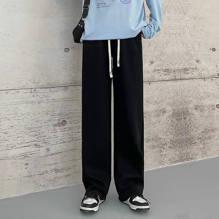 スウェットパンツ イージーパンツ ワイドパンツ ストレートパンツ ウエストゴム ドローストリング ロングパンツ ダンス 大きいサイズ カジュアル メンズライク ストリート レディース ボトムス 黒 白 緑 B-0221【お取寄せ】