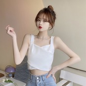 2way クロップド タンクトップ キャミソール ファスナー ノースリーブ ショート丈 インナー レディース トップス 黒 白 B-0301【お取寄せ】
