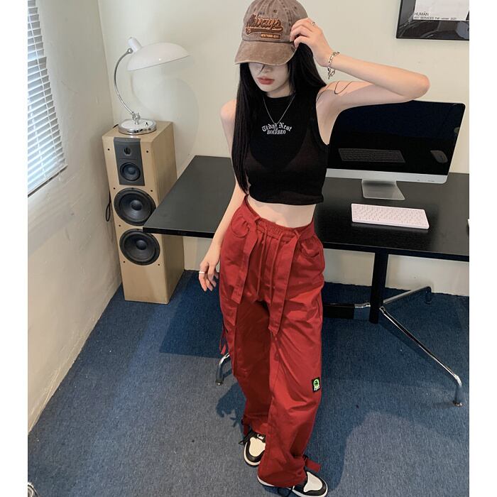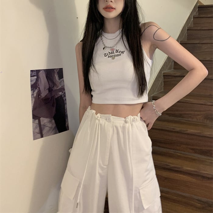 クロップド タンクトップ ロゴ ラウンドネック スリムフィット ショート丈 ノースリーブ レディース トップス 白 黒 茶 B-0302【お取寄せ】