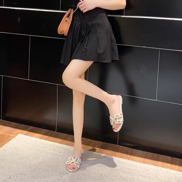 サンダル フラットサンダル パール オープントゥ ローヒール ぺたんこ スリッパ レディース 靴 シューズ 22.5-25cm B-0345 【お取寄せ】