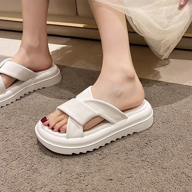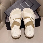 サンダル 厚底 フラットサンダル クロスストラップ オープントゥ ローヒール ぺたんこ スリッパ レディース 靴 シューズ 22.5-25cm 黒 白 黄 B-0363 【お取寄せ】
