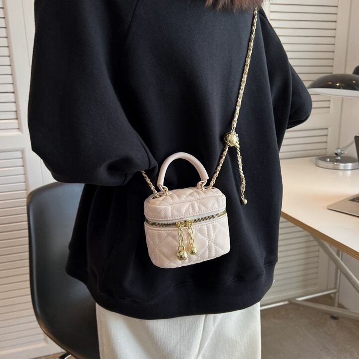 2size ショルダーバッグ チェーンバッグ キルティング バニティバック スクエアバッグ ミニバッグ 軽量 小さめ 肩掛け 斜め掛け かばん 鞄 レディース 黒 白 青 オフホワイト B-0385 【お取寄せ】