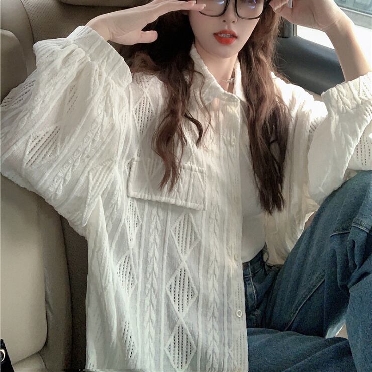 シャツ ブラウス 長袖 ロング丈 羽織り 日焼け対策 透け感 ゆったり レディース トップス アイボリー オフホワイト ベージュ B-0394 【お取寄せ】
