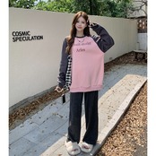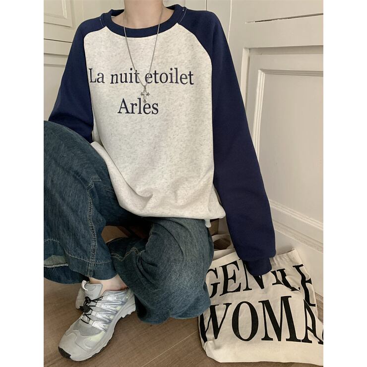 スウェット トレーナー 裏起毛 ラグランスリーブ ロゴ 長袖 クルーネック ラウンドネック プルオーバー ゆったり ルーズ オーバーサイズ ビッグサイズ 大きいサイズ カジュアル メンズライク ストリート ユニセックス メンズ レディース トップス 紺 黒 白 茶 B-0468 【お取寄せ】