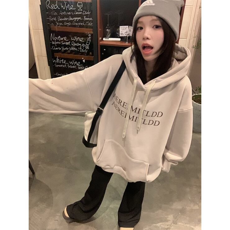 パーカー フーディー プルオーバー 裏起毛 ロゴ 長袖 フード付き スウェット ゆったり オーバーサイズ カジュアル メンズライク ストリート ユニセックス メンズ レディース トップス ベージュ グレージュ B-0540 【お取寄せ】