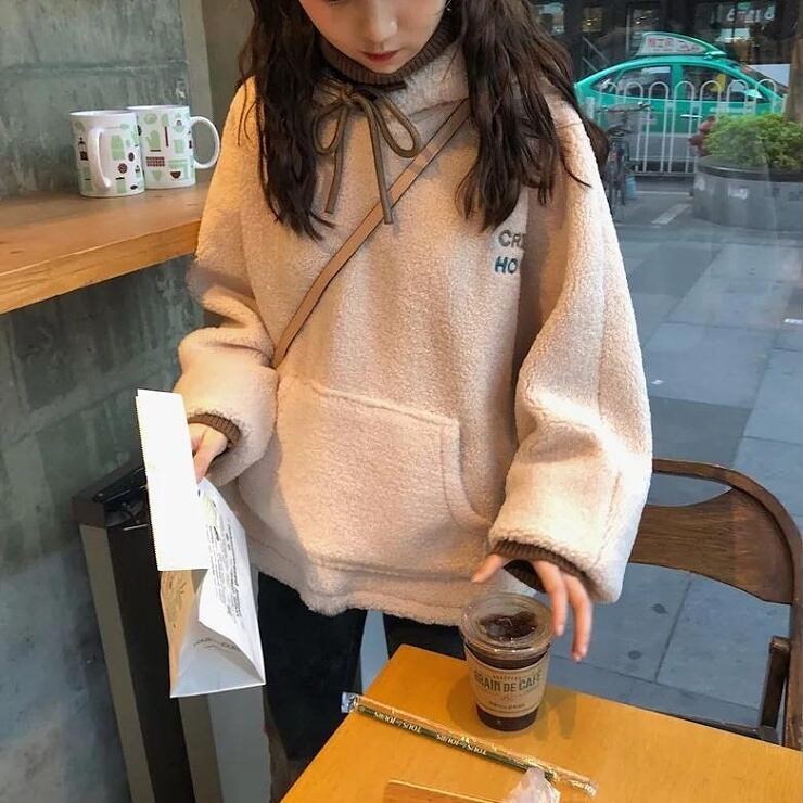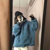 ボア プルオーバー パーカー フーディー レイヤード風 長袖 ロゴ フード付き フリース ブルゾン ジャケット カジュアル 大きいサイズ レディース トップス アウター 青 ベージュ B-0557 【お取寄せ】