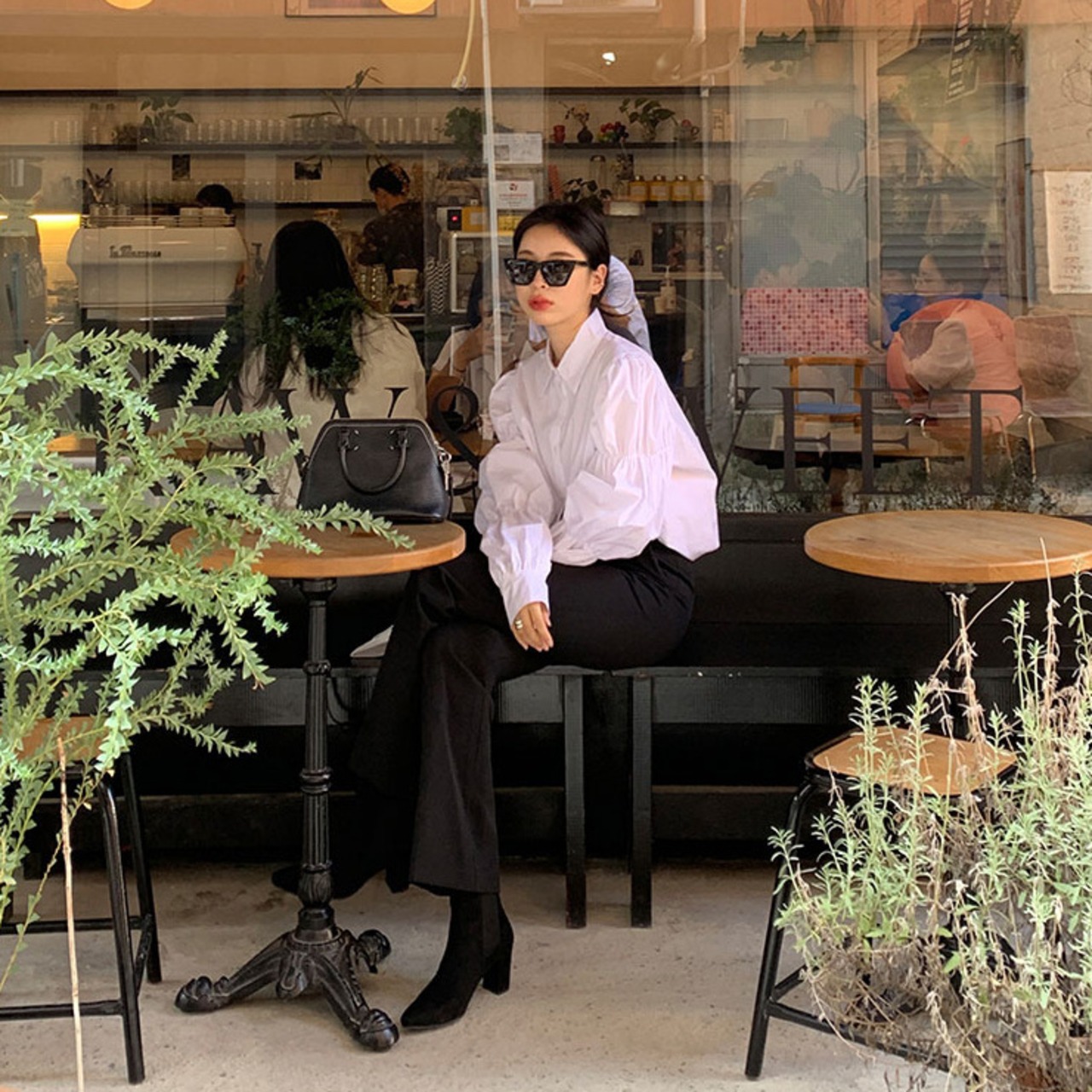 ブラウス シャツ 長袖 パフスリーブ ギャザー 上品 きれいめ レディース トップス 白 B-0641 【お取寄せ】