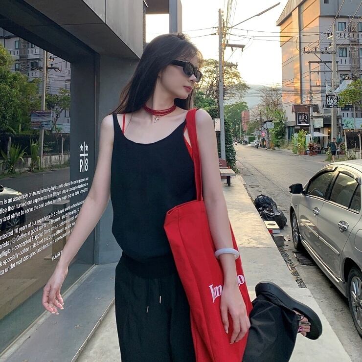 ニット キャミソール タンクトップ バックレス 背中あき ノースリーブ べスト ルーズ レディース トップス 黒 B-0652 【お取寄せ】