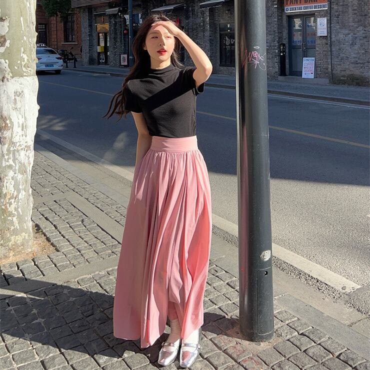 ロングスカート ギャザースカート マキシ丈 ハイウエスト ポケット Aライン フレア レディース ボトムス B-0679 【お取寄せ】