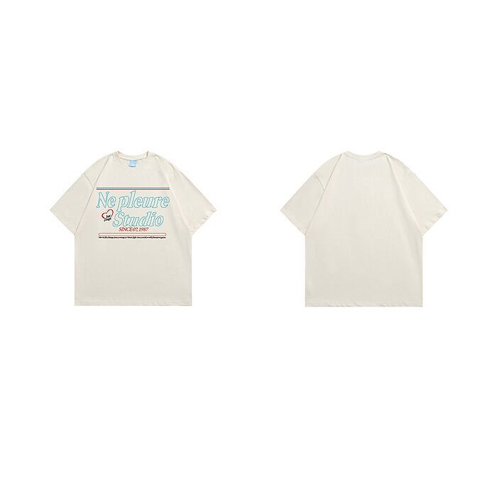 Tシャツ 半袖 ロゴ ラウンドネック クルーネック カットソー ルーズ ゆったり オーバーサイズ 大きいサイズ カジュアル メンズライク ストリート レディース トップス 白 クリーム色 アイボリー B-0749 【お取寄せ】