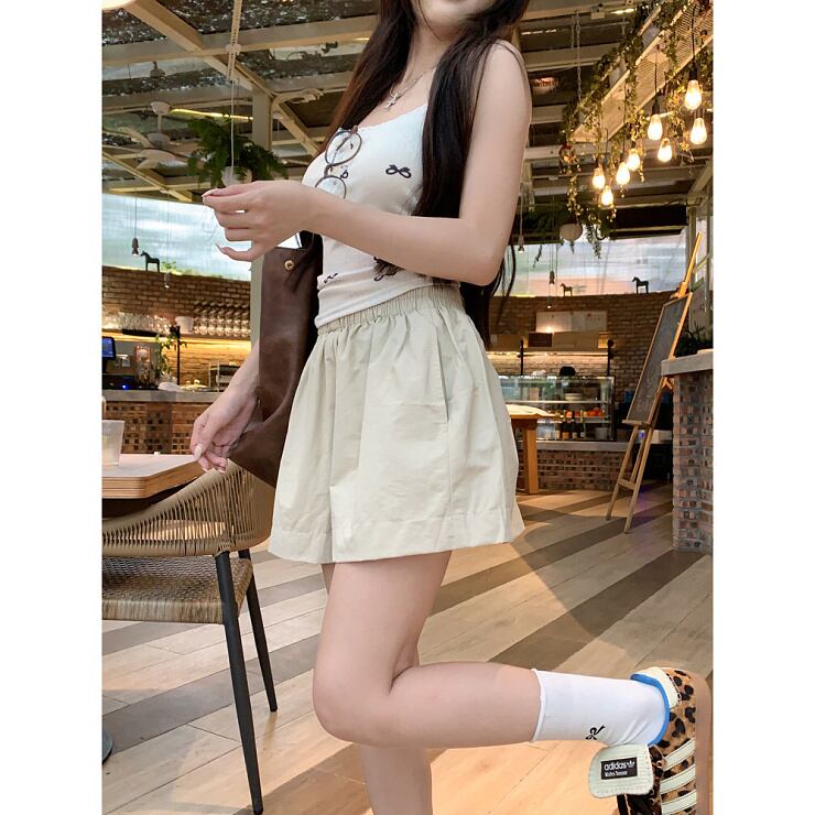 ショートパンツ ウエストゴム ワイドレッグ ハイウエスト シンプル ショーパン 短パン ホットパンツ ルームウェア 部屋着 カジュアル 大きいサイズ レディース 黒 白 黄 青 ベージュ B-0806 【お取寄せ】