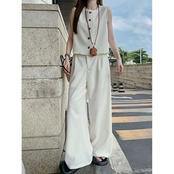ワイドパンツ ウエストゴム ハイウエスト タック シンプル ロングパンツ セットアップ レディース ボトムス 白 オフホワイト アイボリー B-0831 【お取寄せ】