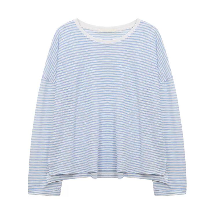 シアー Tシャツ ボーダー柄 長袖 ラウンドネック シースルー 透け感 カットソー 日焼け対策 ゆったり ルーズ オーバーサイズ レディース トップス 白 青 B-0846 【お取寄せ】