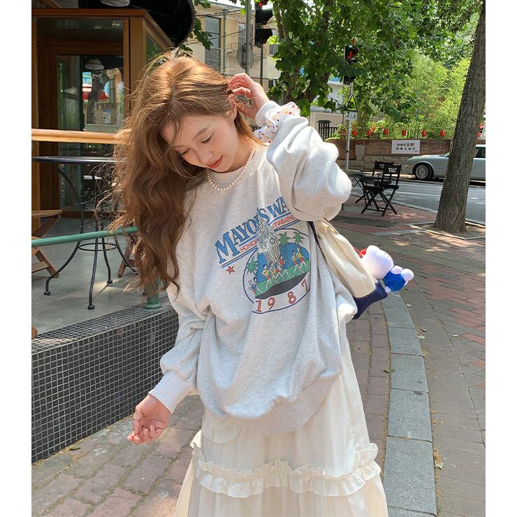 裏起毛 スウェット トレーナー 長袖 ロゴ プリント クルーネック ラウンドネック プルオーバー カジュアル Sinbounboun レディース トップス B-0920 【お取寄せ】