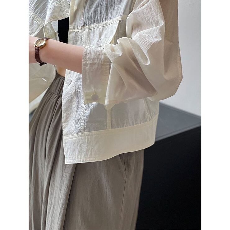 ブルゾン ジャケット 薄手 長袖 スタンドカラー ジャンパー 透け感 日焼け対策 大人カジュアル レディース アウター 黒 白 ベージュ アイボリー オフホワイト B-0926 【お取寄せ】