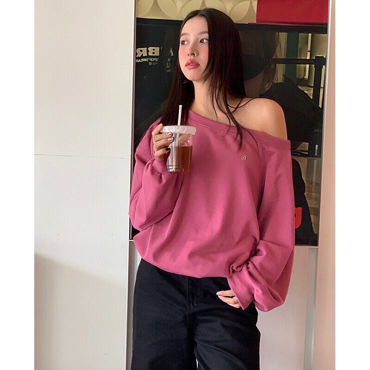 ワンショルダー スウェット トレーナー アシンメトリー オフショルダー 長袖 プルオーバー カジュアル Sinbounboun レディース トップス 白 B-0932 【お取寄せ】