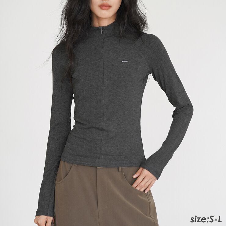 ハーフジップ カットソー 長袖 ラグランスリーブ ハイネック スリム タイト インナー EIGHTHMONTH レディース トップス ダークグレー B-0985 【お取寄せ】