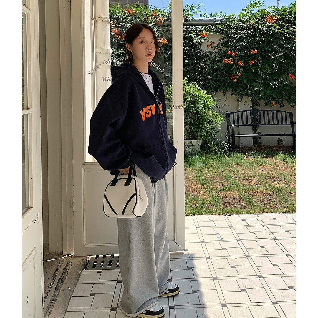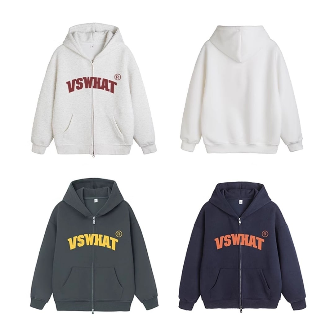 ジップパーカー フーディー 長袖 ジップアップ ロゴ フード付き スウェット ゆったり ルーズ オーバーサイズ ビッグサイズ 大きいサイズ カジュアル メンズライク ストリート Vs what レディース トップス 紺 白 B-1018 【お取寄せ】